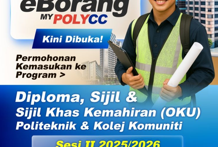 Permohonan Sesi II : 2025/2026 TELAH DIBUKA !!! Permohonan dibuka kepada lepasan Sijil Pelajaran Malaysia (SPM) Sijil Politeknik Sijil Kolej Komuniti Sijil Institut…
